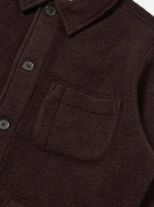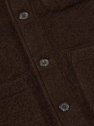 A contemporary chore jacket in a relaxed fit with three patch pockets and pocket reinforcement detail.