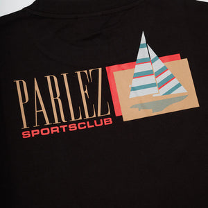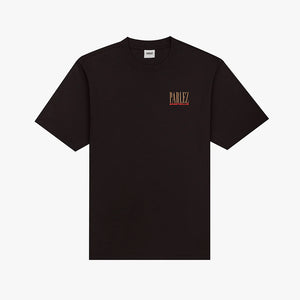 The Auriga Tee in Black. A short sleeve tee made from GOTS certified, 100% organic cotton with a classic ribbed crewneck. Featuring a large, printed design on the back and a smaller printed logo on the chest.