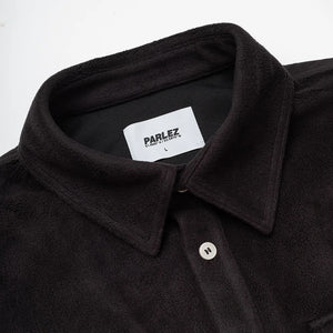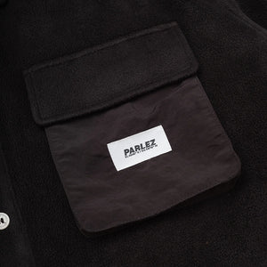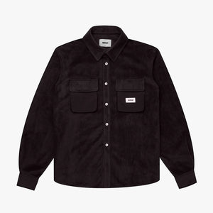 The Motion Fleece Shirt in Black. A relaxed fit, button through shirt made from a soft, 100% recycled polyester. Featuring two contrasting nylon bellow pockets, button cuffs and a contrasting nylon yoke. Detailed with a woven branded patch on the pocket.