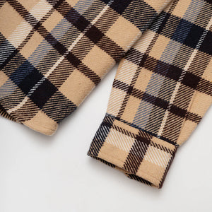 The Rivington Shirt in Blue Check. A classic plaid shirt crafted from a premium recycled cotton and polyester blend. Finished with branded coconut buttons, a spread collar, dual chest pockets, and detailed with a small woven label at the chest.