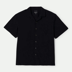 The Bunker is a short-sleeve button-up woven in a breathable fabric. It has a relaxed fit, straight hem and side vents for mobility. A casual camp collar makes this piece ideal for sitting, sipping and staycations.