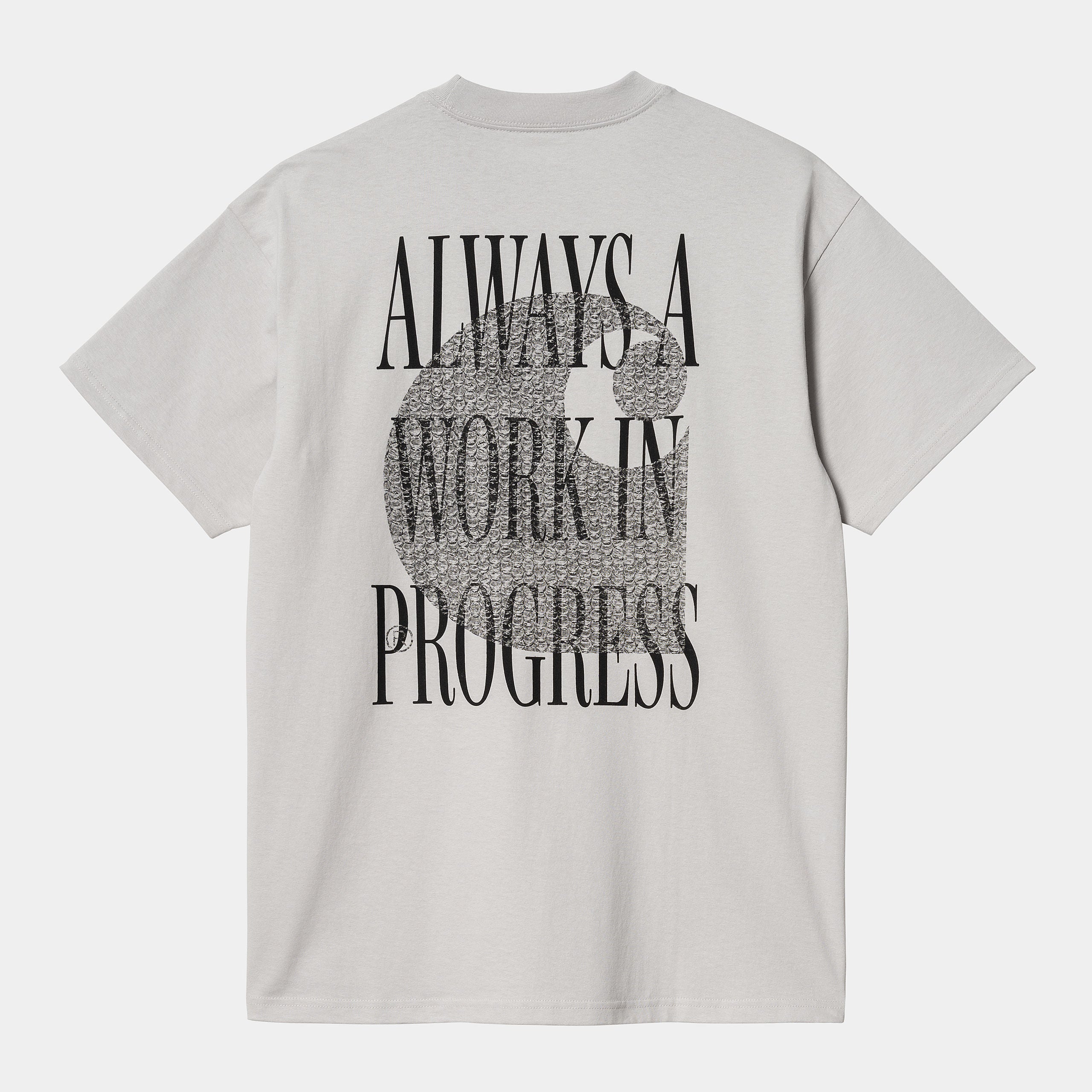 The S/S Always a WIP T-Shirt is woven from midweight organic cotton jersey in a loose fit. Graphic prints appear on the chest and back.