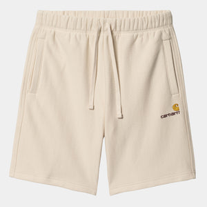 Made from heavyweight cotton-poly jersey that has been brushed for a fleece-like backing, the American Script Sweat Short has a loose fit. The garment is detailed with two side pockets and a back pocket. An embroidered American Script logo appears on the left leg.