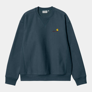 Made from heavyweight, cotton-poly jersey fabric, the American Script Sweatshirt has been brushed to give it a fleece-like backing. The garment has a loose fit and is detailed with a crewneck collar, as well as a ribbed hem, cuffs, and side panels. American Script embroidery appears at the chest.
