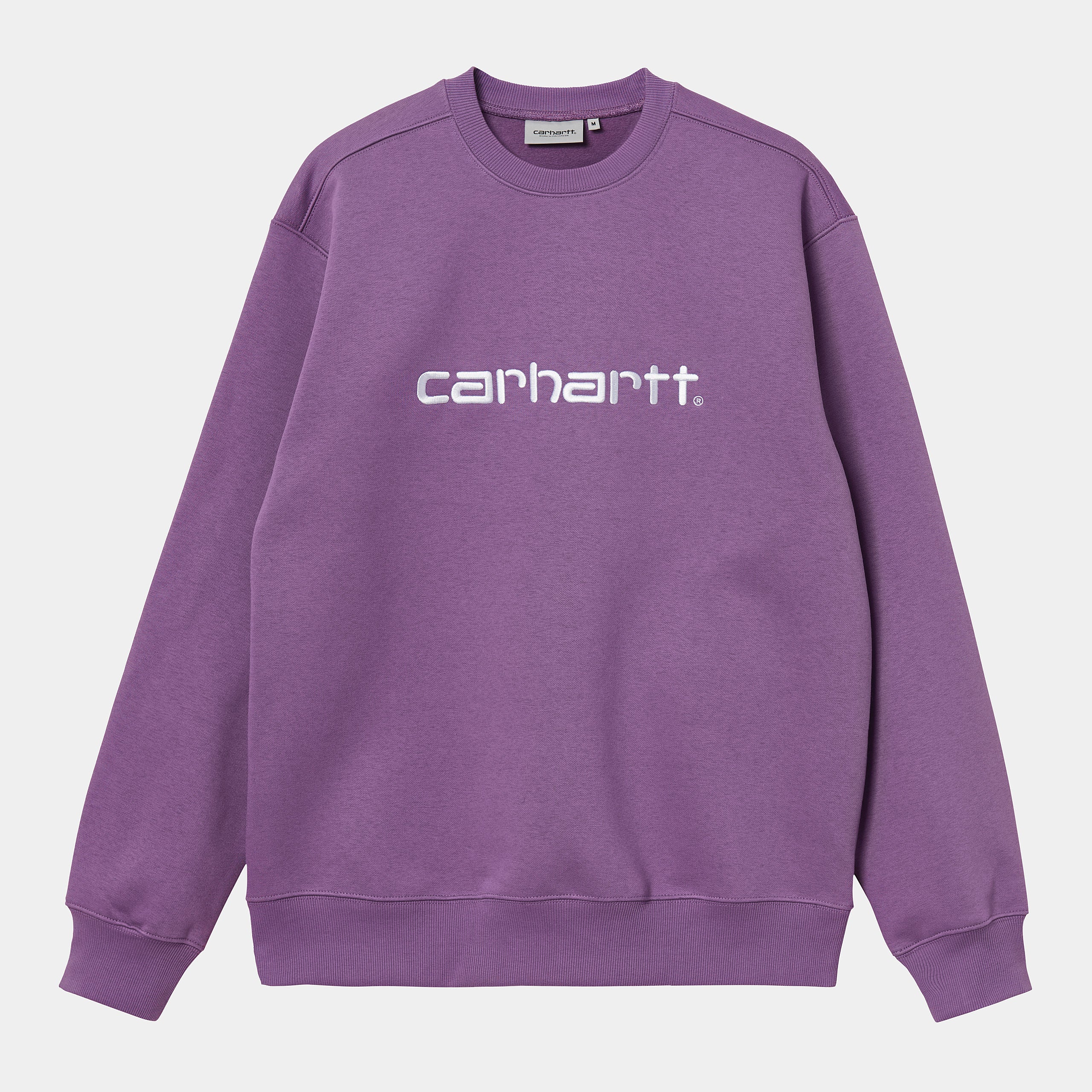 The Carhartt Sweatshirt is constructed from a 13 oz cotton-polyester blend and brushed for extra softness and warmth without losing breathability. This garment features an embroidered Carhartt Script Logo across the front, and has a loose, boxy silhouette