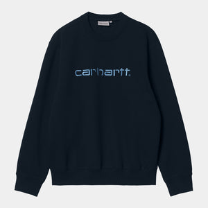 The Carhartt Sweatshirt is constructed from a 13 oz cotton-polyester blend and brushed for extra softness and warmth without losing breathability. This garment features an embroidered Carhartt Script Logo across the front, and has a loose, boxy silhouette