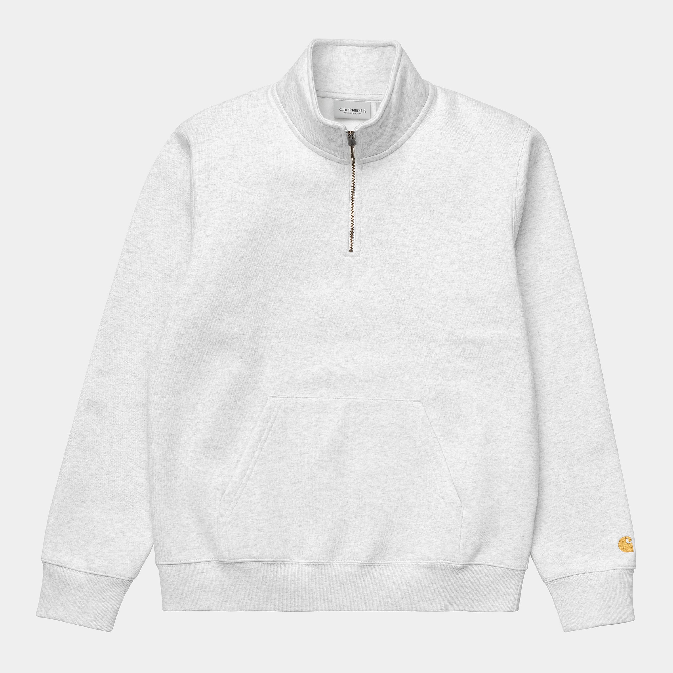 The Chase Neck Zip Sweatshirt is constructed from a 13 oz cotton-polyester blend and brushed for extra softness and warmth, without losing breathability. The garment features a high neck with a zipper, flatlock stitching and a kangaroo pocket. Embroidered detailing on left sleeve.