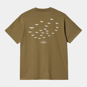 The S/S Formation T-Shirt is woven from light organic cotton jersey in a loose fit. Seasonal graphic prints appear on the front and back.