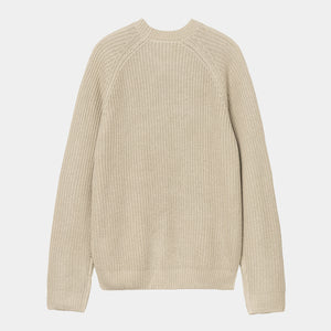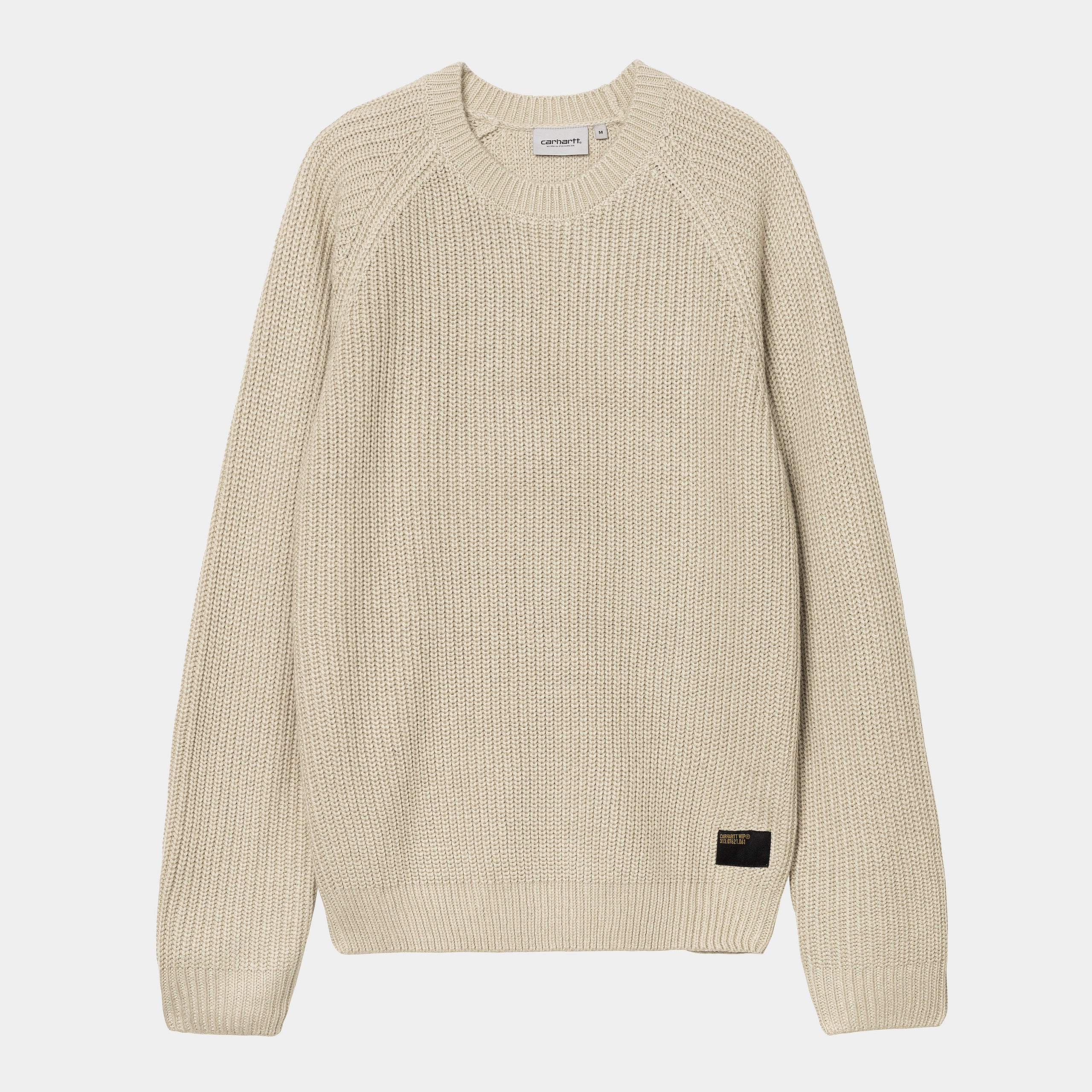 The Forth Sweater is a heavyweight, textured knit made from a blend of natural and synthetic fibers. The item also has raglan sleeves for a more relaxed fit. A military label completes the design.
