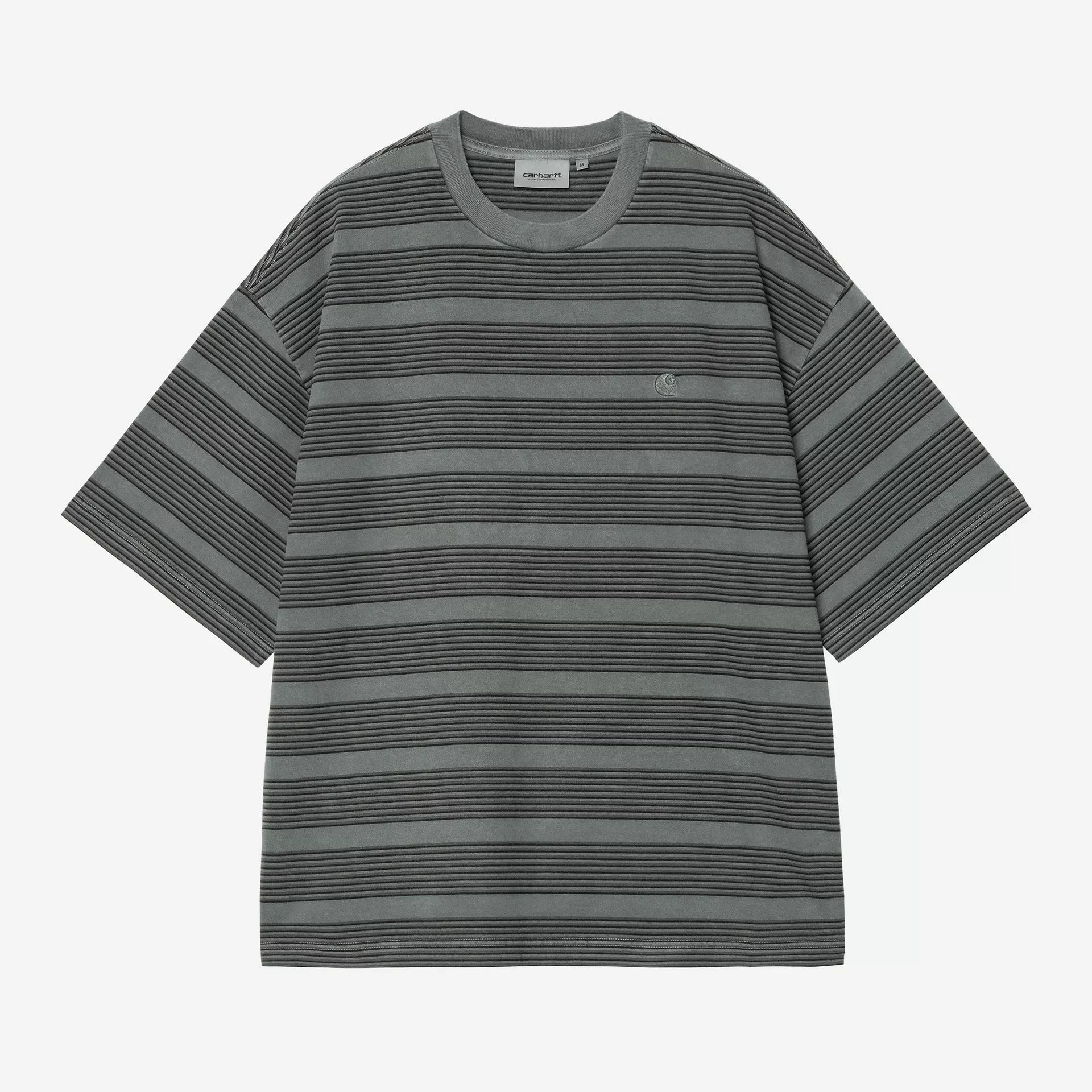 The S/S Hanson T-Shirt is made in a loose fit from a midweight, striped cotton jersey, which has been garment-dyed for a softer feel and complex color configuration. An embroidered ‘C’ Logo appears on the chest.