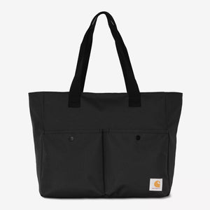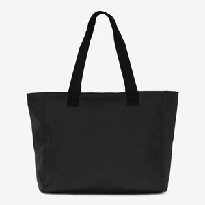 The Jake Tote Bag is made from a heavyweight polyester canvas. The style features a zipped main compartment. Two pockets appear on the inside, and two snap-button pockets appear on the outside. A woven Square Label completes the design.