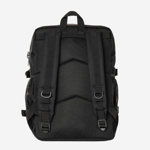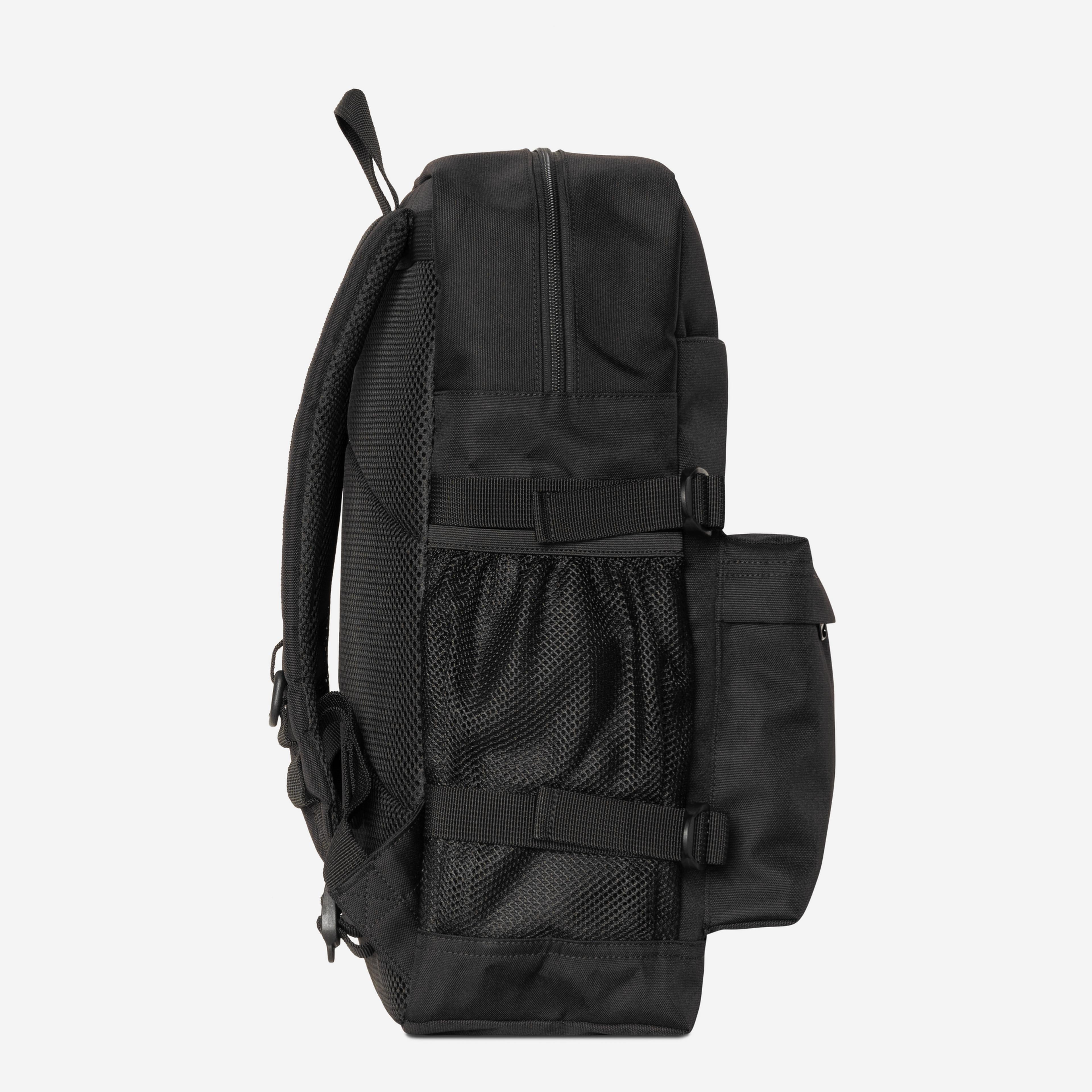 The Jakob Backpack is constructed from unlined, water-repellent polyester canvas. The item has a zipped main compartment, as well as two zipped front pockets and two mesh side pockets. The shoulder straps and back are padded for a more cushioned feel. A woven Square Label completes the design.