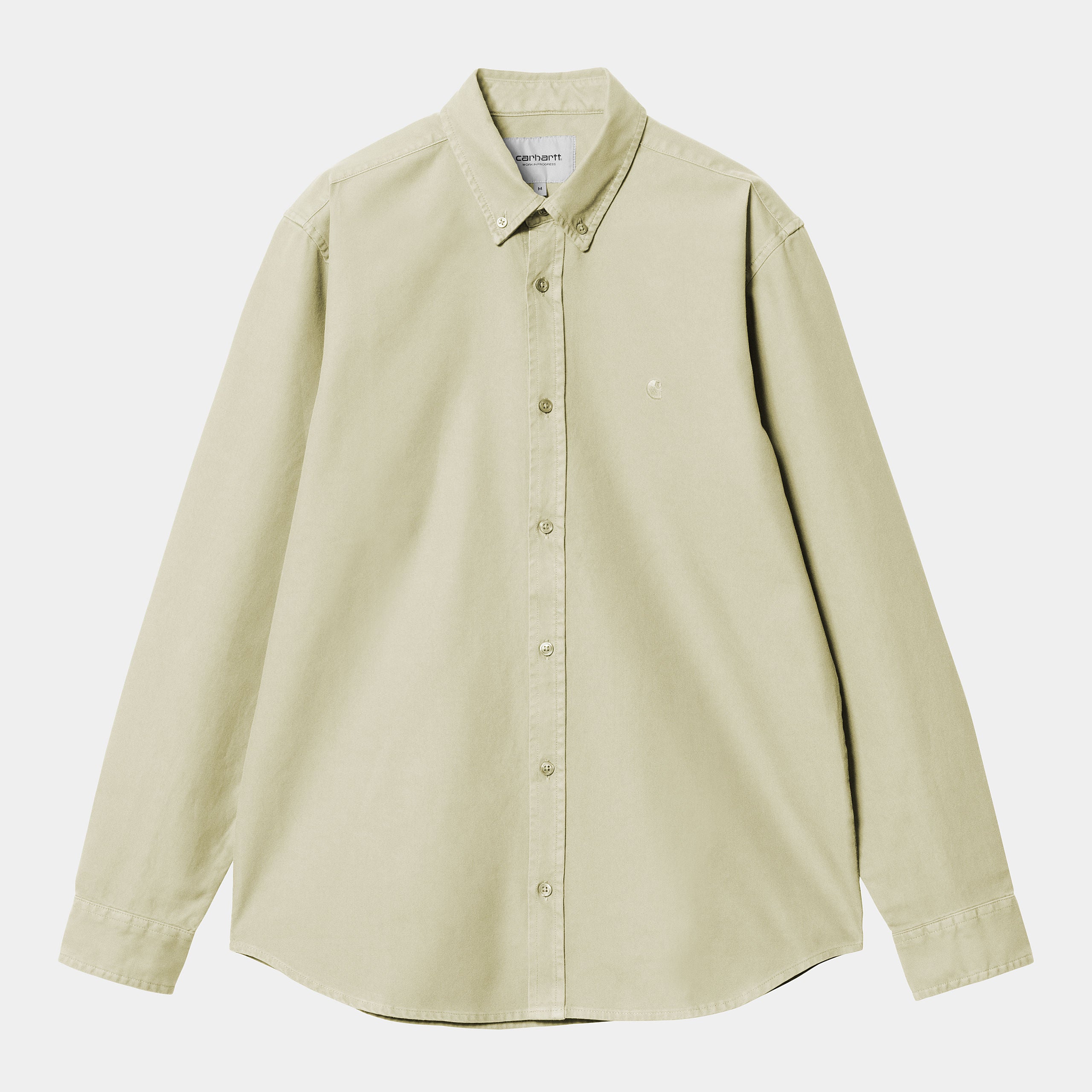 The L/S Bolton Shirt is a classic button-down style and has been woven from Oxford cotton in a regular fit, and features a curved hem. It has been garment-dyed resulting in a subtle variation in color throughout and a softer feel. It is finished with a button-down collar and subtle embroidered Carhartt WIP 'C' Logo at the chest.