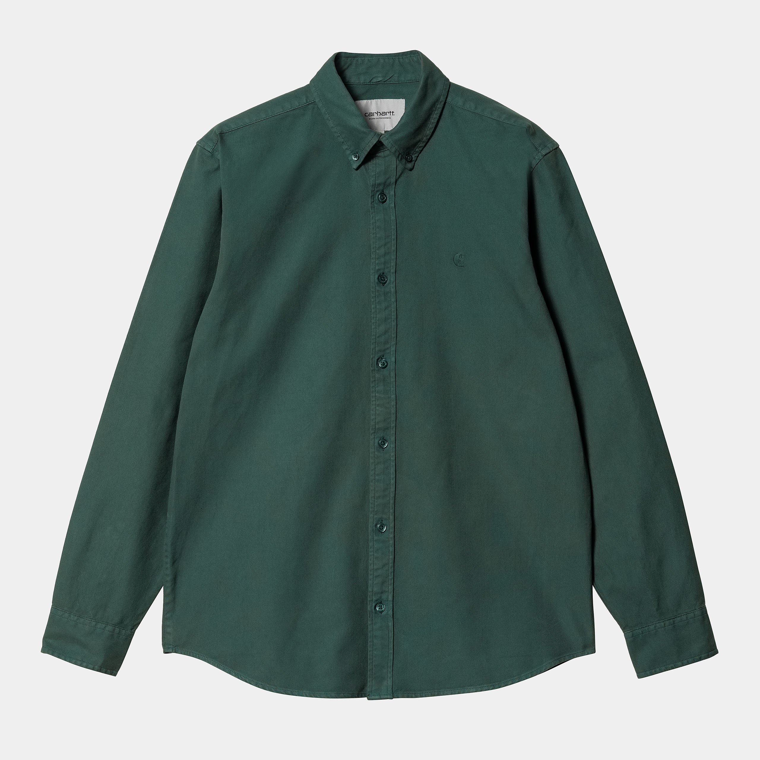 The L/S Bolton Shirt is a classic button-down style and has been woven from Oxford cotton in a regular fit, and features a curved hem. It has been garment-dyed resulting in a subtle variation in color throughout and a softer feel. It is finished with a button-down collar and subtle embroidered Carhartt WIP 'C' Logo at the chest.