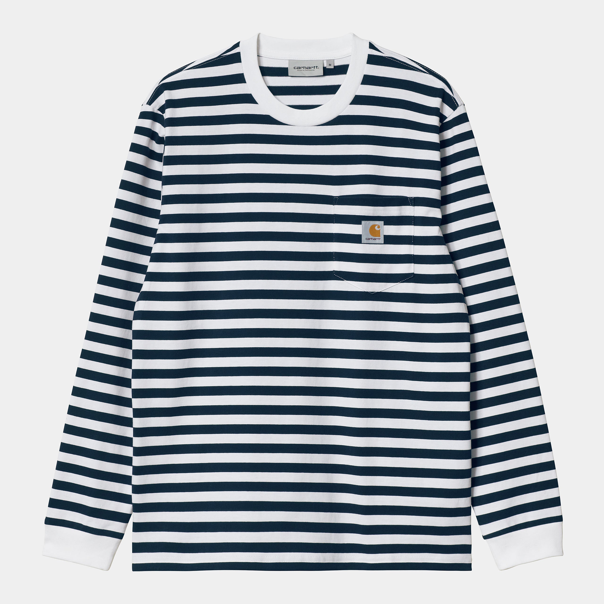 The L/S Scotty Pocket T-Shirt is constructed from their striped cotton jersey. The garment has been yarn dyed, and features a chest pocket with the classic woven Carhartt WIP logo. Regular fit.