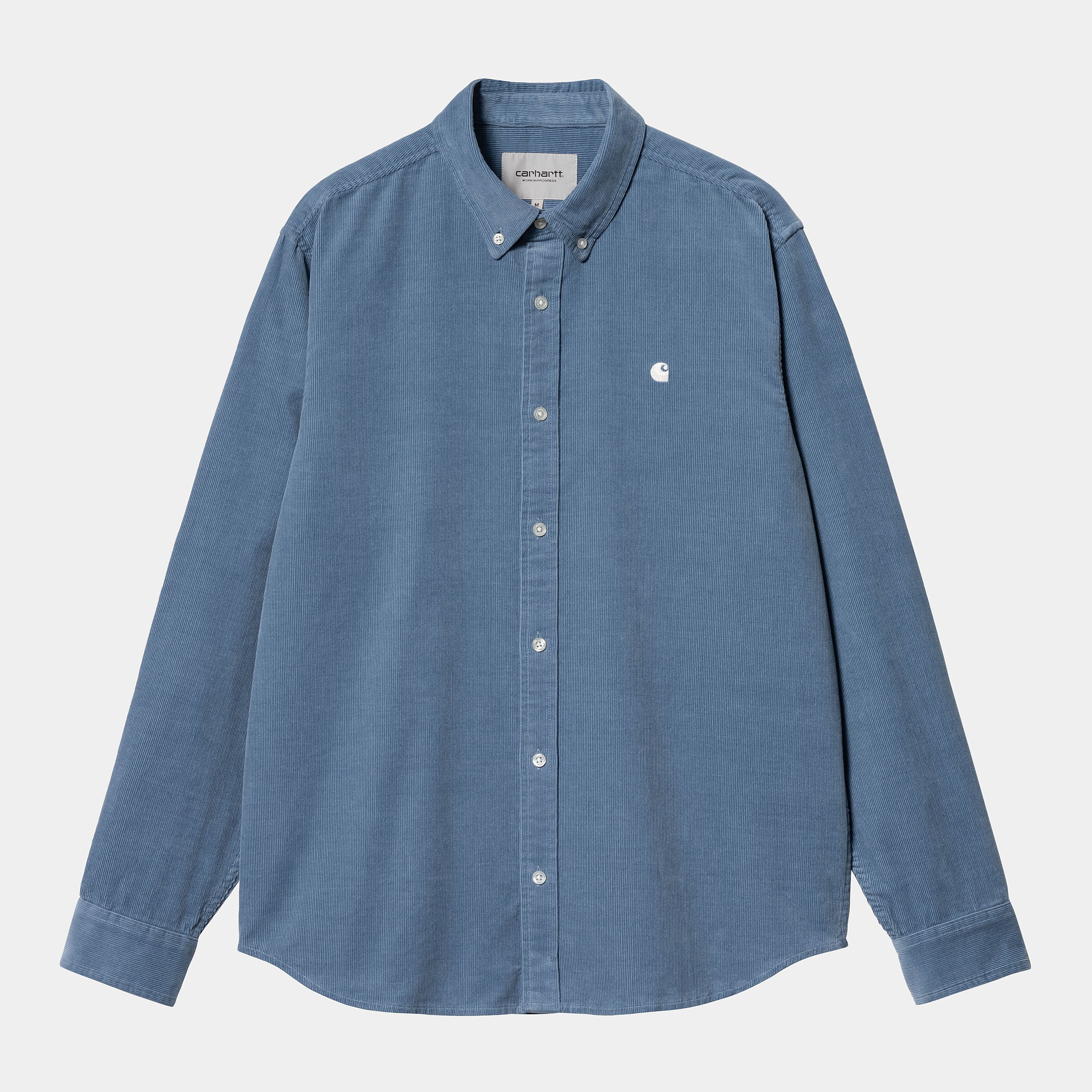The L/S Madison Fine Cord Shirt is a classic button-down shirt constructed from a midweight 16 wales cotton corduroy. The number of wales denotes how chunky the ridges of the corduroy fabric is, with 16 being very fine. This item has been garment washed for a softer feel, and is finished with an embroidered Carhartt WIP C Logo on the left chest. Curved hem and button down collar.