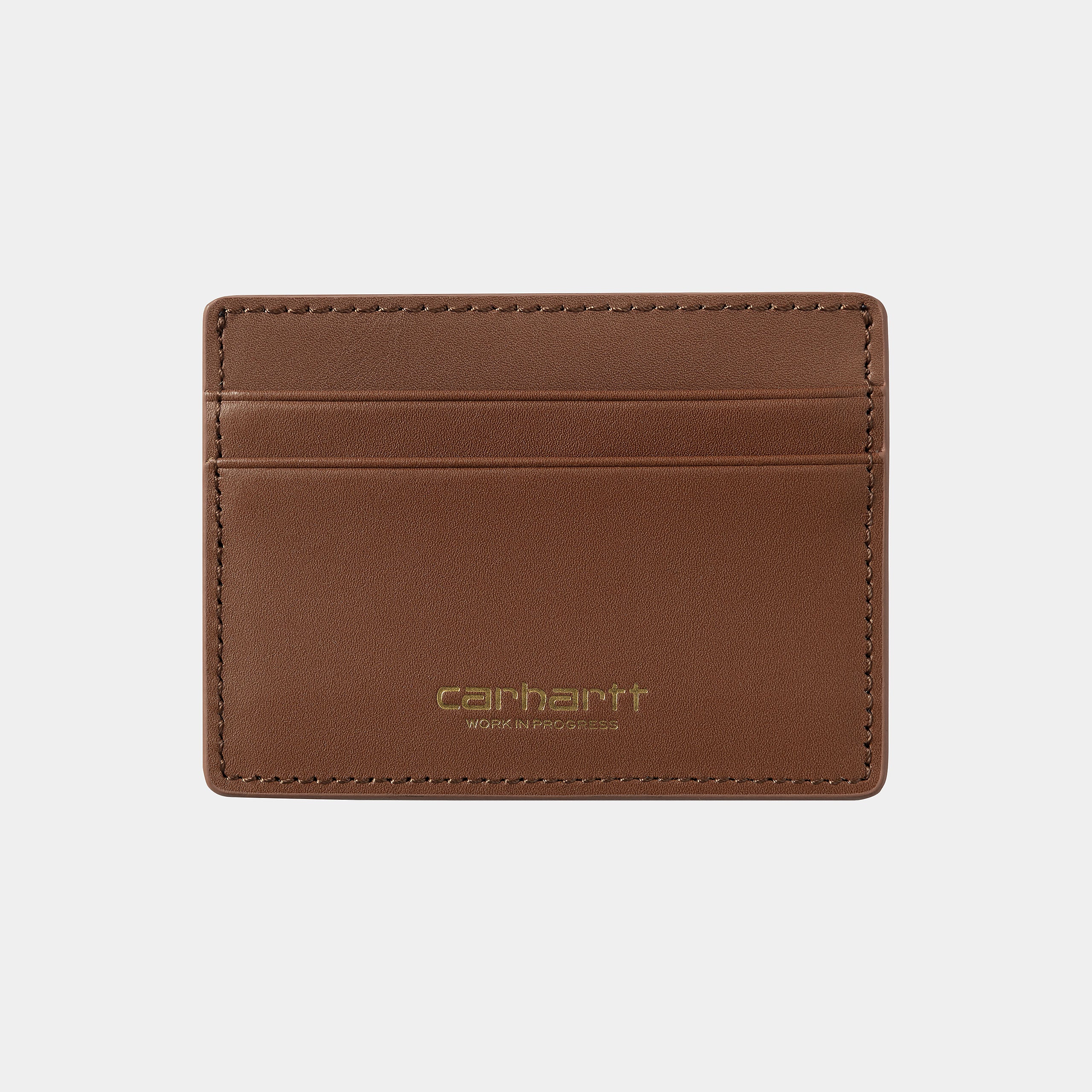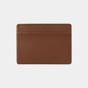 The Vegas Cardholder is made of leather and fully lined. It has two front card slots, one card slot at the back, and a single bill compartment in the middle. A gold-tone Script Logo appears on the front.