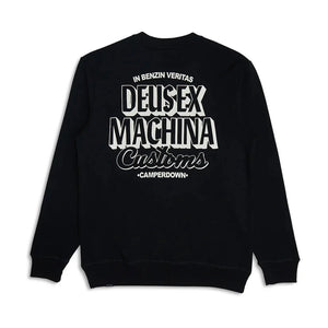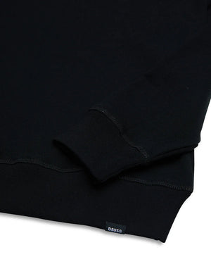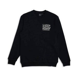 Regular fit crew with chest and back prints. 320gm organic cotton brushed back fleece fabrication with a garment wash
