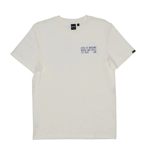 Regular fit t-shirt with chest and back printed artwork, recycled cotton and recycled polyester mix jersey fabrication with a heavy garment wash
