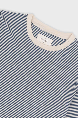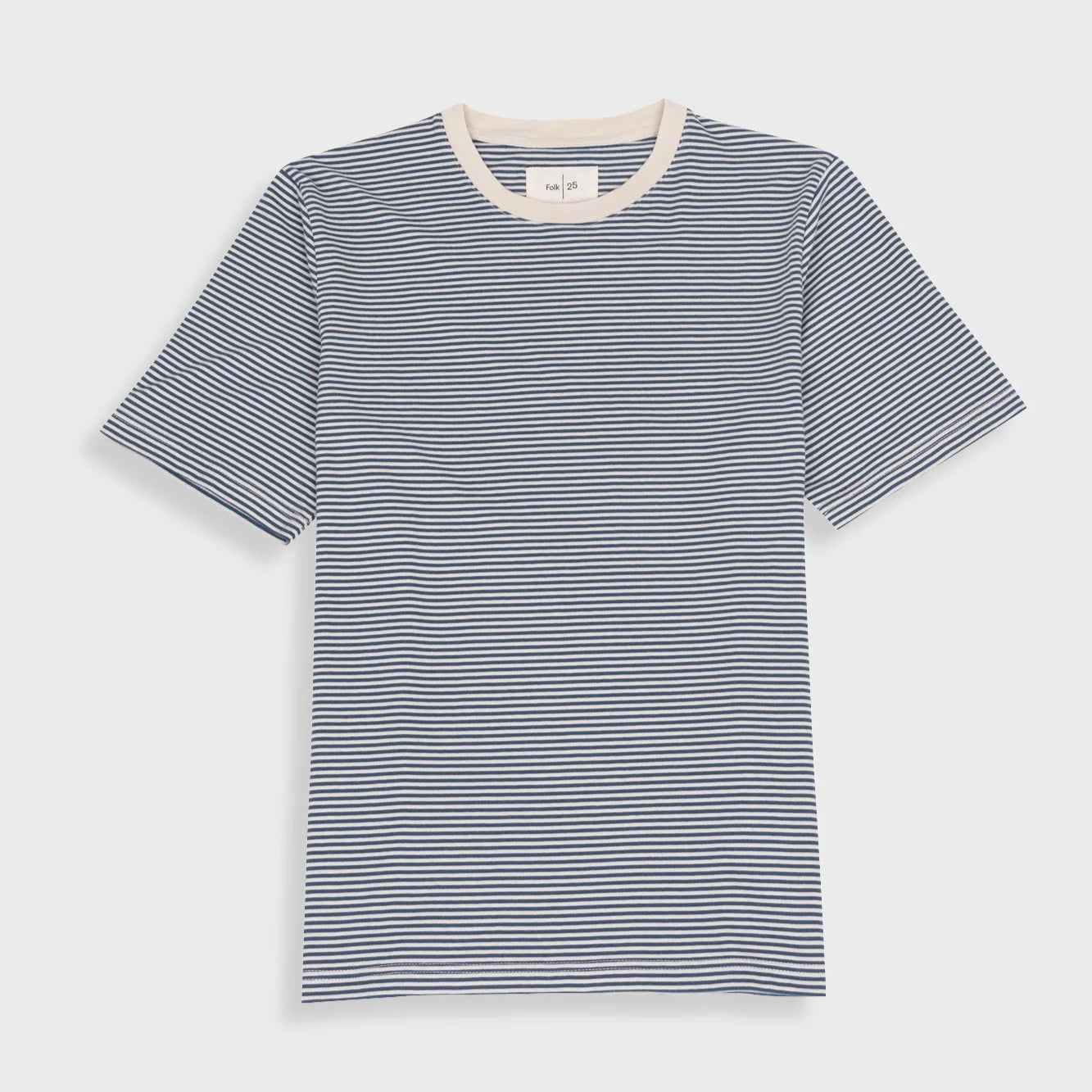 The 1x1 Striped T-Shirt features a relaxed fit and unique slubby texture, giving it a super soft feel. The tee has been designed with an inserted rib crew neck collar and twin needle finish for added durability.