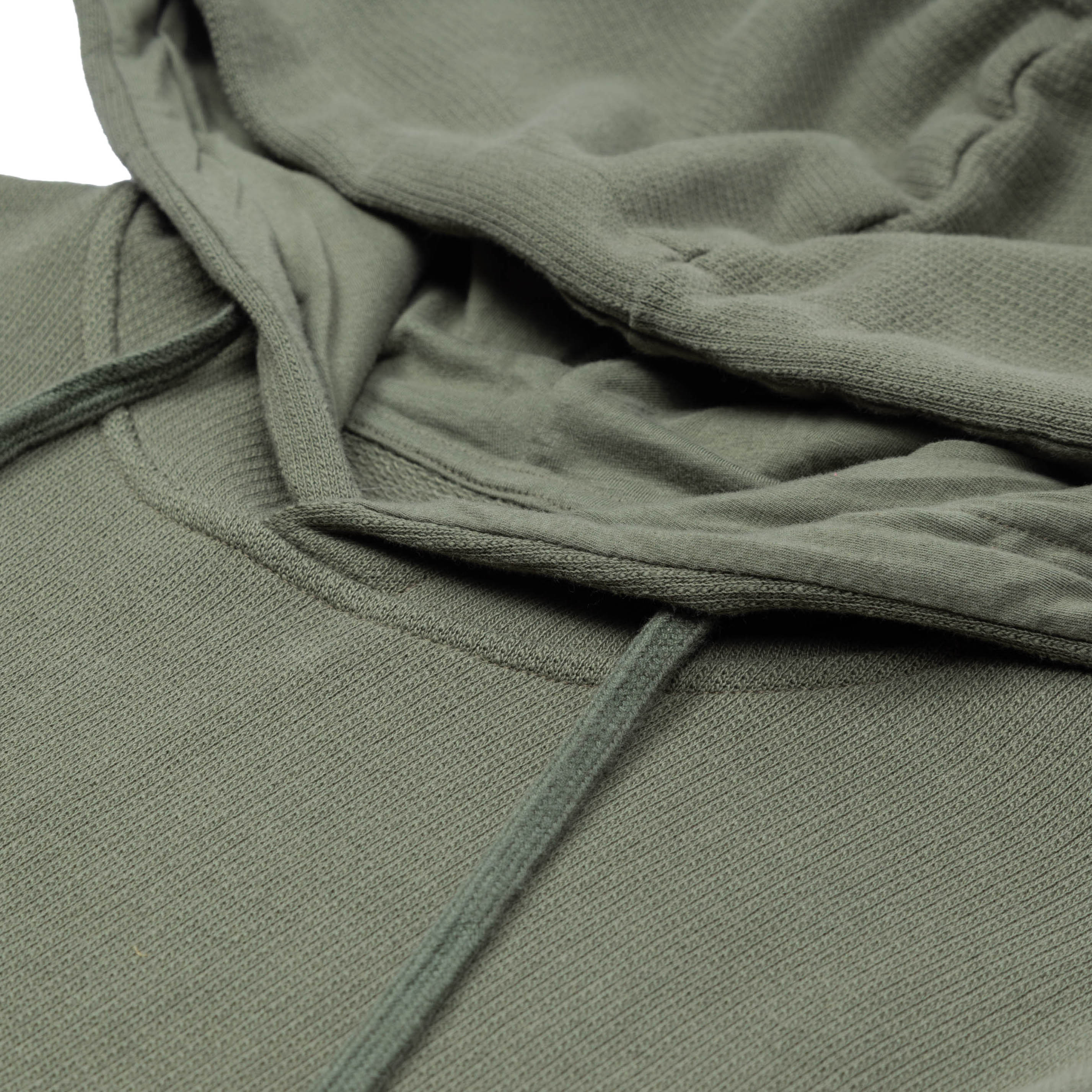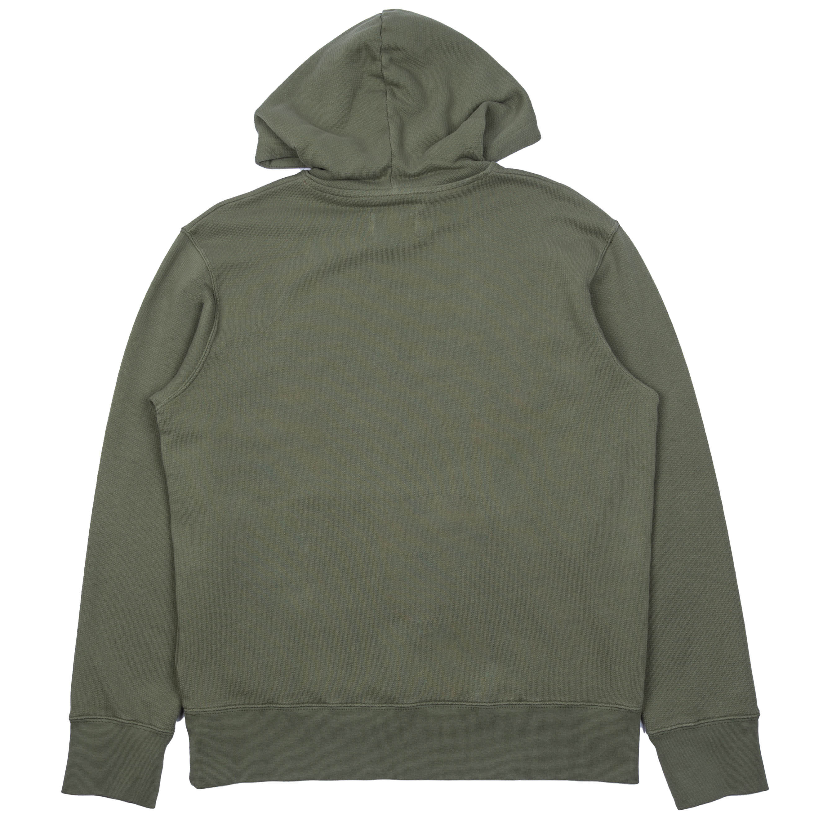 > Twin-needle stitch detail at cuffs, neck and hem.