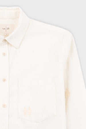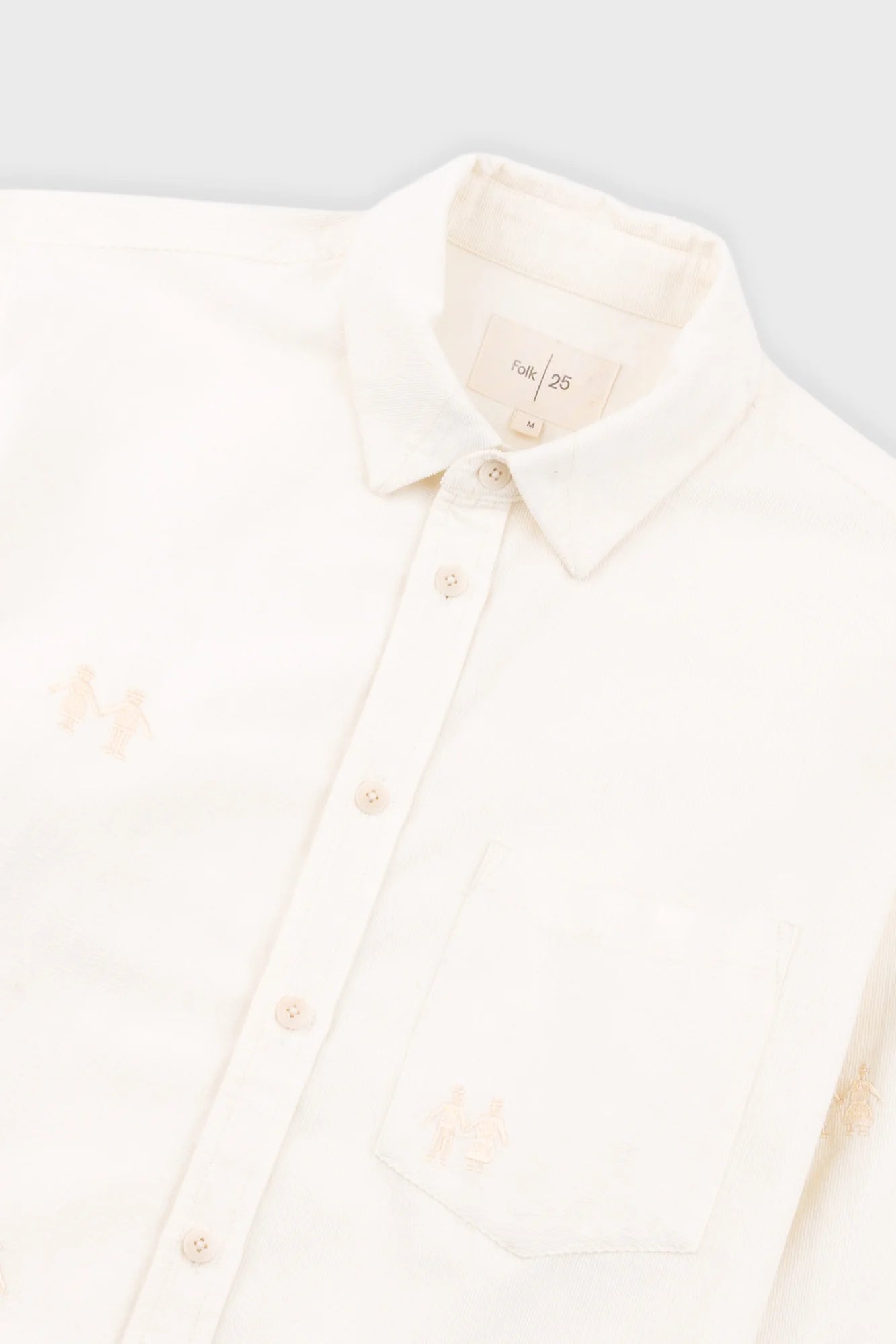 The Direction Babycord Shirt has a relaxed fit. It features a patch pocket at the chest and Corozo nut buttons and is designed in cotton fine wale corduroy fabric with our 'Folk people' embroidered in tonal stitching across the surface.