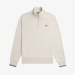 Cotton funnel neck half-zip designed with twin tipping to the cuffs.