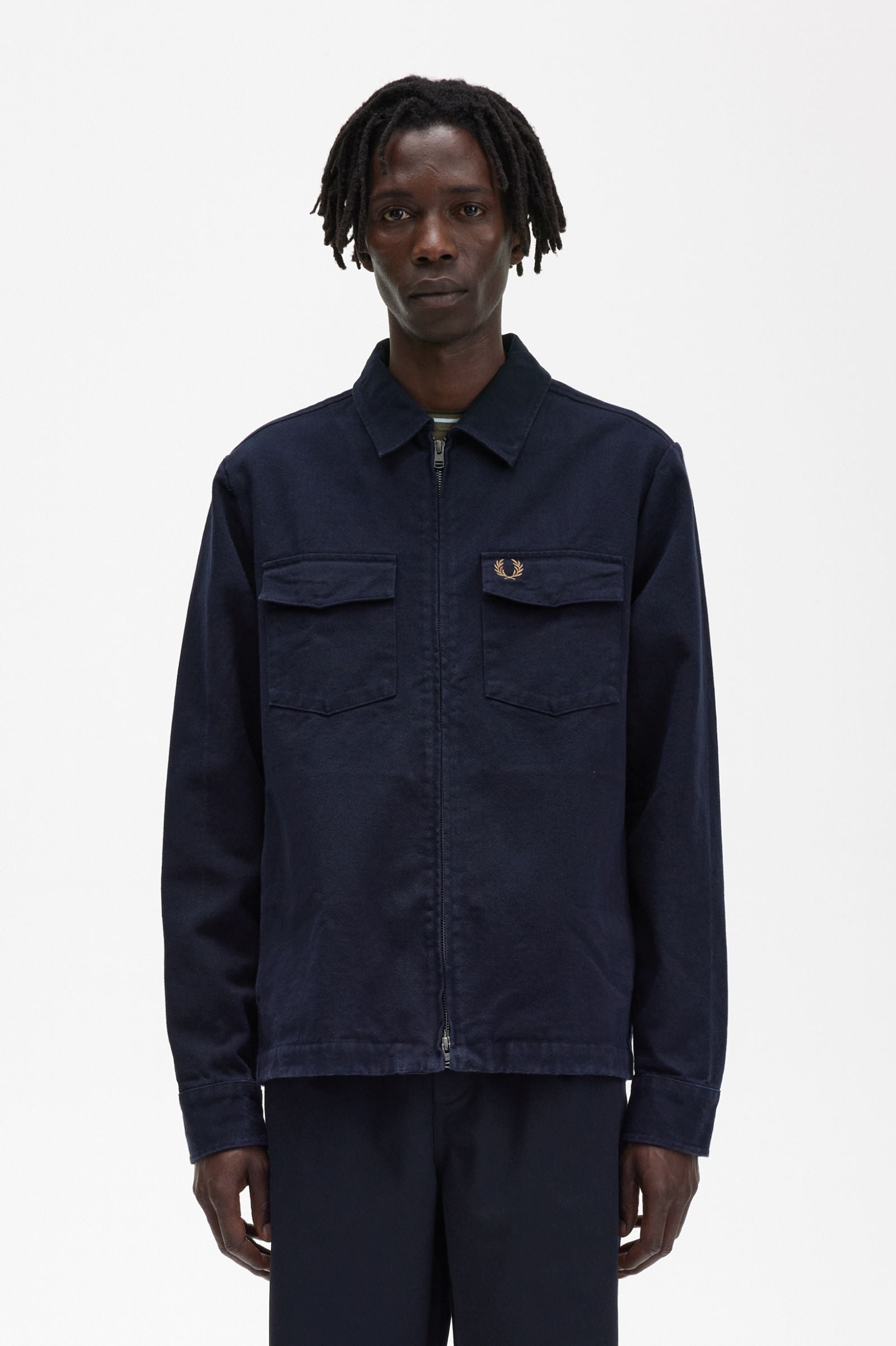 Heavy cotton twill / Regular fit / Patch pockets / Branded zip through fastening