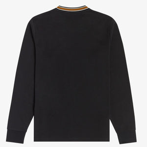 A long-sleeve T-shirt in weighty interlock cotton jersey, designed with textured tramline tipping at the neck.