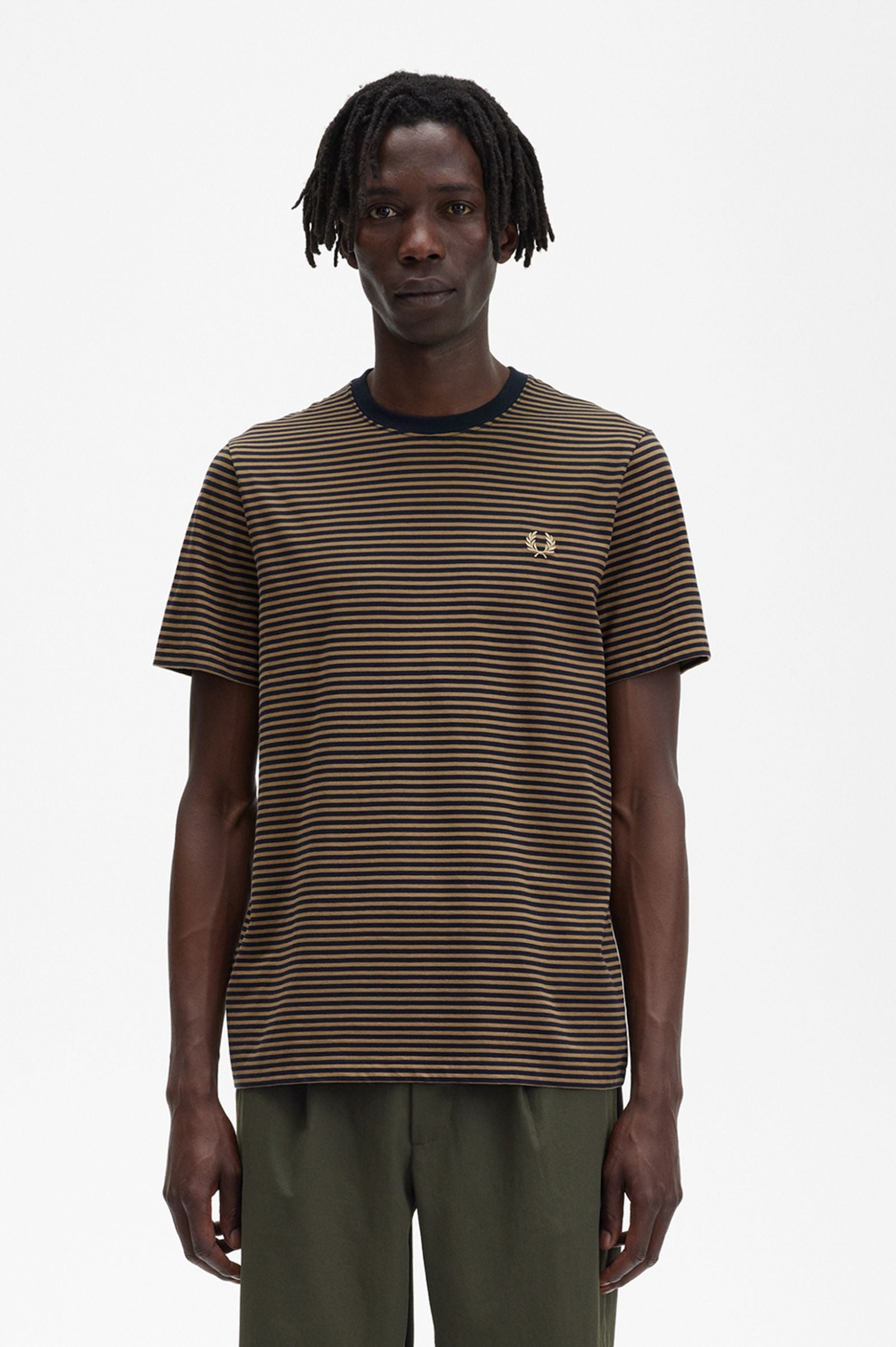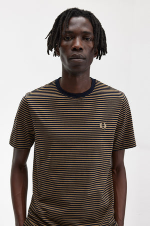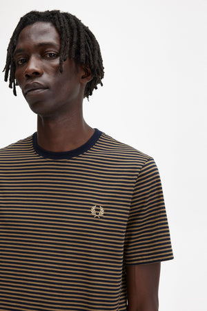 Fred Perry Fine Stripe T-Shirt - Shaded Stone / Navy