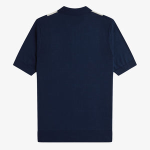 Fred Perry Vertical Stripe Zip Neck - Tennis Blue / Silver Blue / Ecru