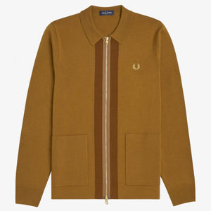Fred Perry Zip Through Cardigan - Dark Caramel