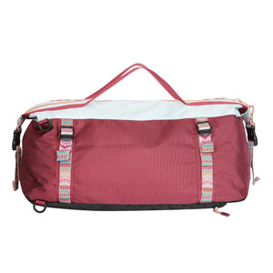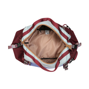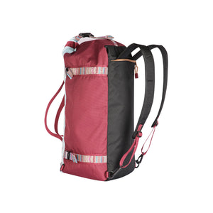 11oz 600D polyester - water resistant / 12oz cotton canvas Adjustable padded backpack shoulder straps Adjustable and detachable padded duffle shoulder strap Fixed hand straps Exterior patterned webbing cinch straps Additional side panel cinch straps Exterior zip pocket Main compartment with two way zip Interior zip and two mesh organisational pockets Rope loop zip pulls Padded bottom panel
