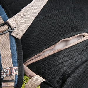 Main compartment with cord-lock cinch and flap closure and side entry access