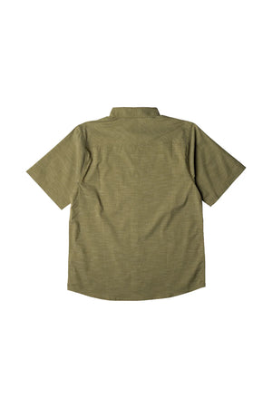 Casual fit, short sleeve button up shirt, button down collar with interior logo jacquard tape, single chest pocket with button closure, curved hem.