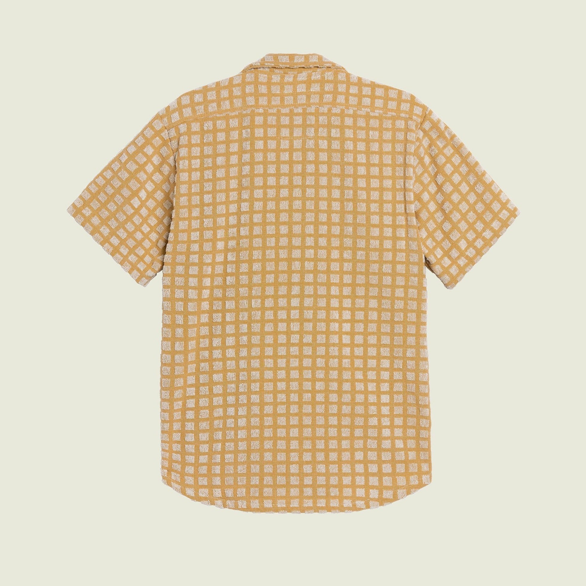The Sculpt Box Cuba terry shirt is jacquard-woven in a sun-washed checked design. Tailored from midweight cotton terry that’s sumptuously soft and breathable, with a resort collar and buttons running down the front.