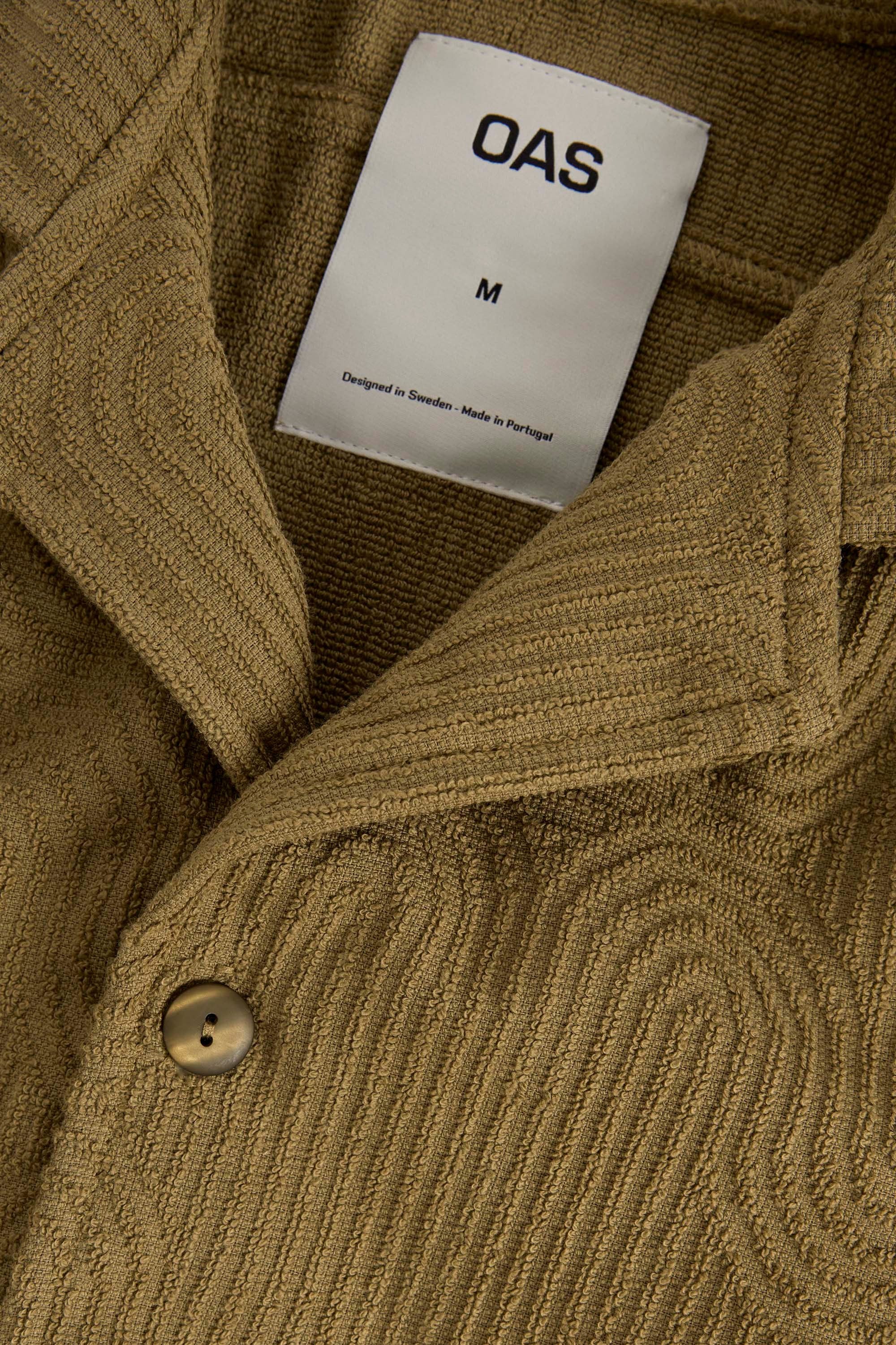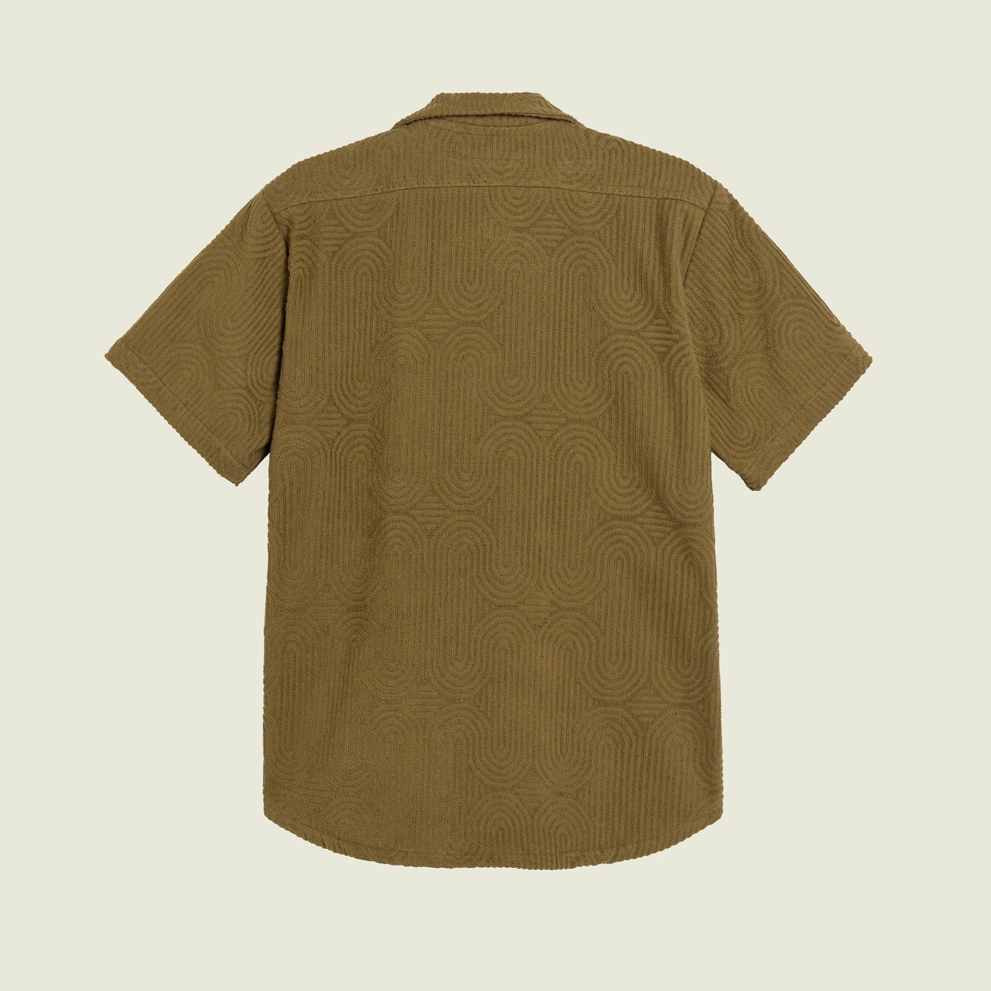 The Zabyrinth Cuba terry shirt is jacquard-woven with geometric swirls from a heavyweight cotton terry that's sumptuously soft and breathable. Cut for a relaxed fit with a resort collar that extends to a tonal-buttoned front and a curved hemline.