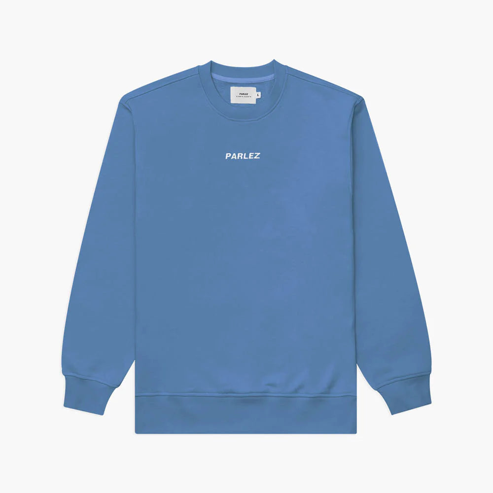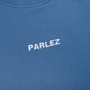 The Ladsun Crew Sweatshirt in River Blue. A lookback pullover constructed from a blend of recycled and organic cotton. Featuring a classic crew neck, drop-shoulder and ribbed trims. Detailed with a simple embroidered logo on the chest in white.