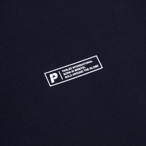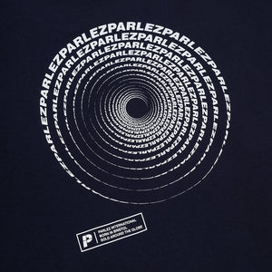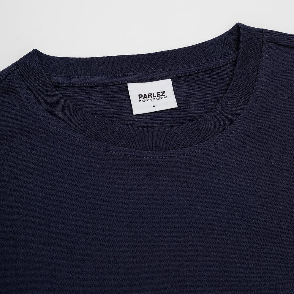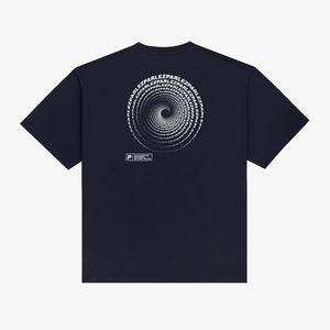 The Luna T-Shirt in Midnight. A short sleeve, oversized tee with a classic ribbed crewneck. Made from premium, GOTS Certified 100% organic cotton. Featuring a printed graphic on the chest and a larger printed design on the back.