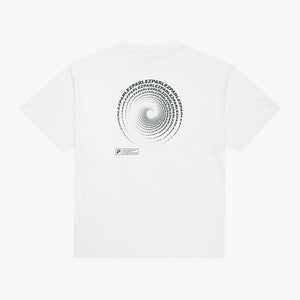 The Luna T-Shirt in White. A short sleeve, oversized tee with a classic ribbed crewneck. Made from premium, GOTS Certified 100% organic cotton. Featuring a printed graphic on the chest and a larger printed design on the back.