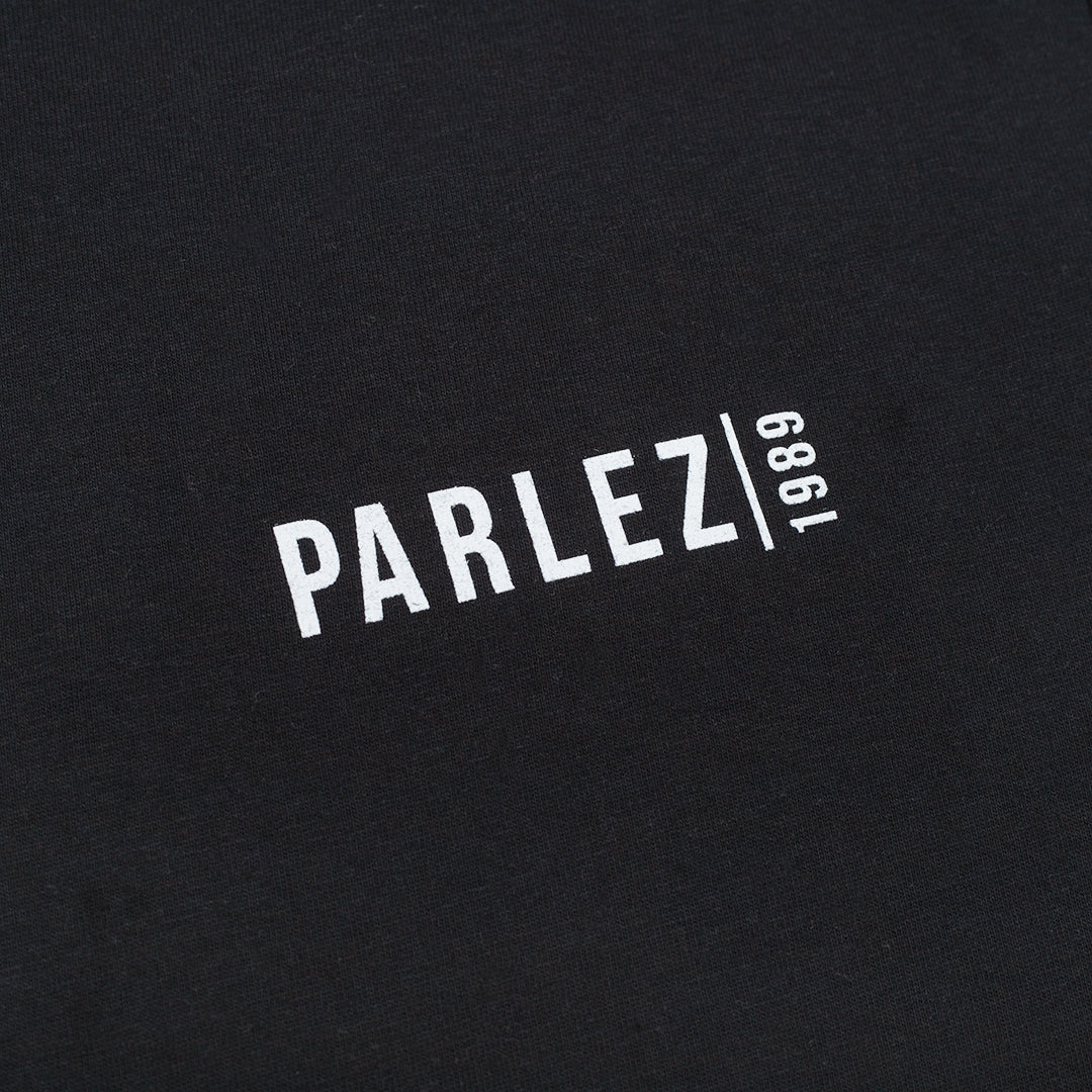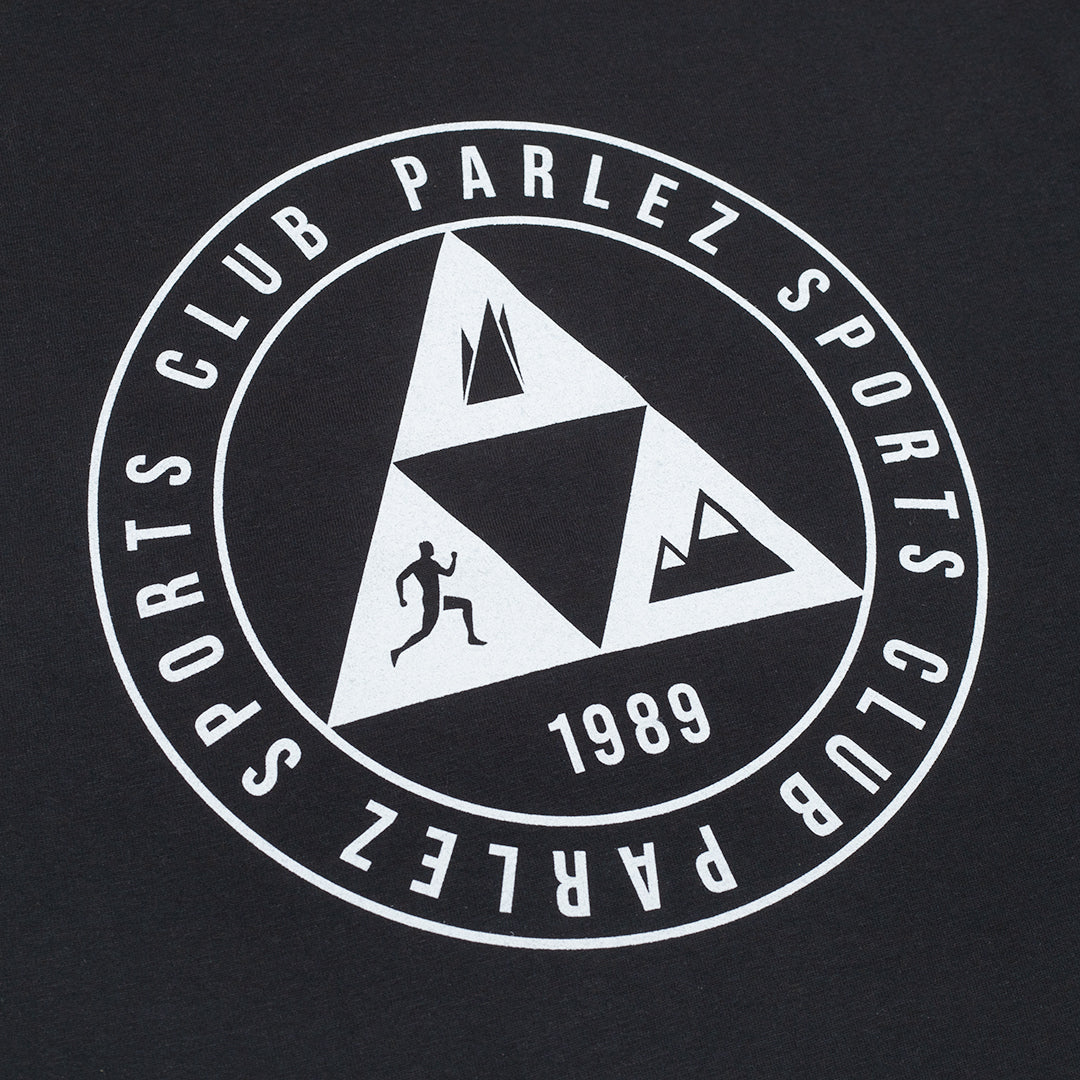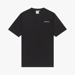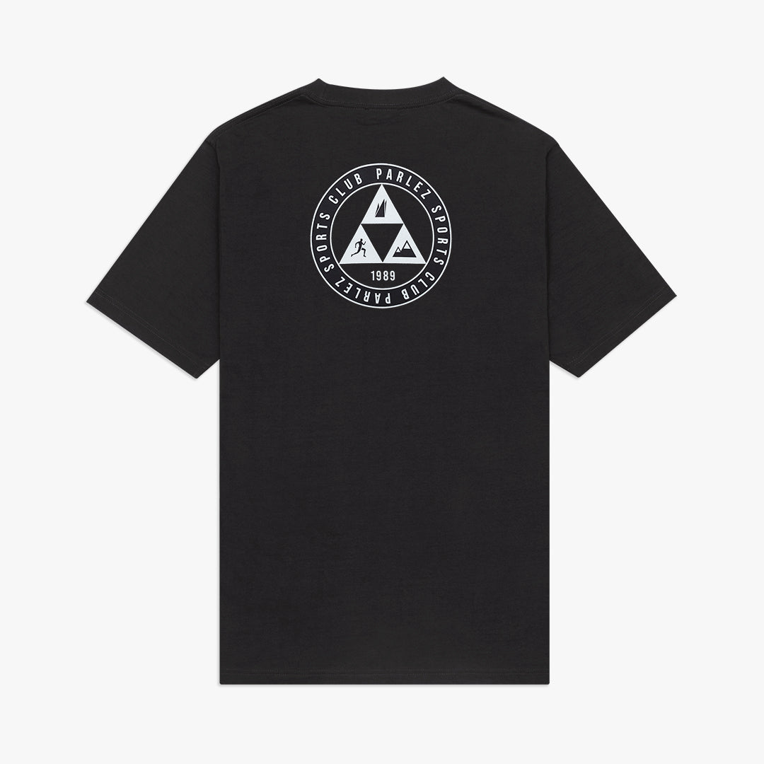 The Marathon T-Shirt in Black. A short sleeve tee constructed from premium 100% organic cotton with a classic ribbed crewneck. Finished with printed chest branding and a large back design in White.- 100% GOTS Certified Organic Cotton - Pre-shrunk - Short Sleeve - Ribbed Crewneck - Printed Chest & Back Design