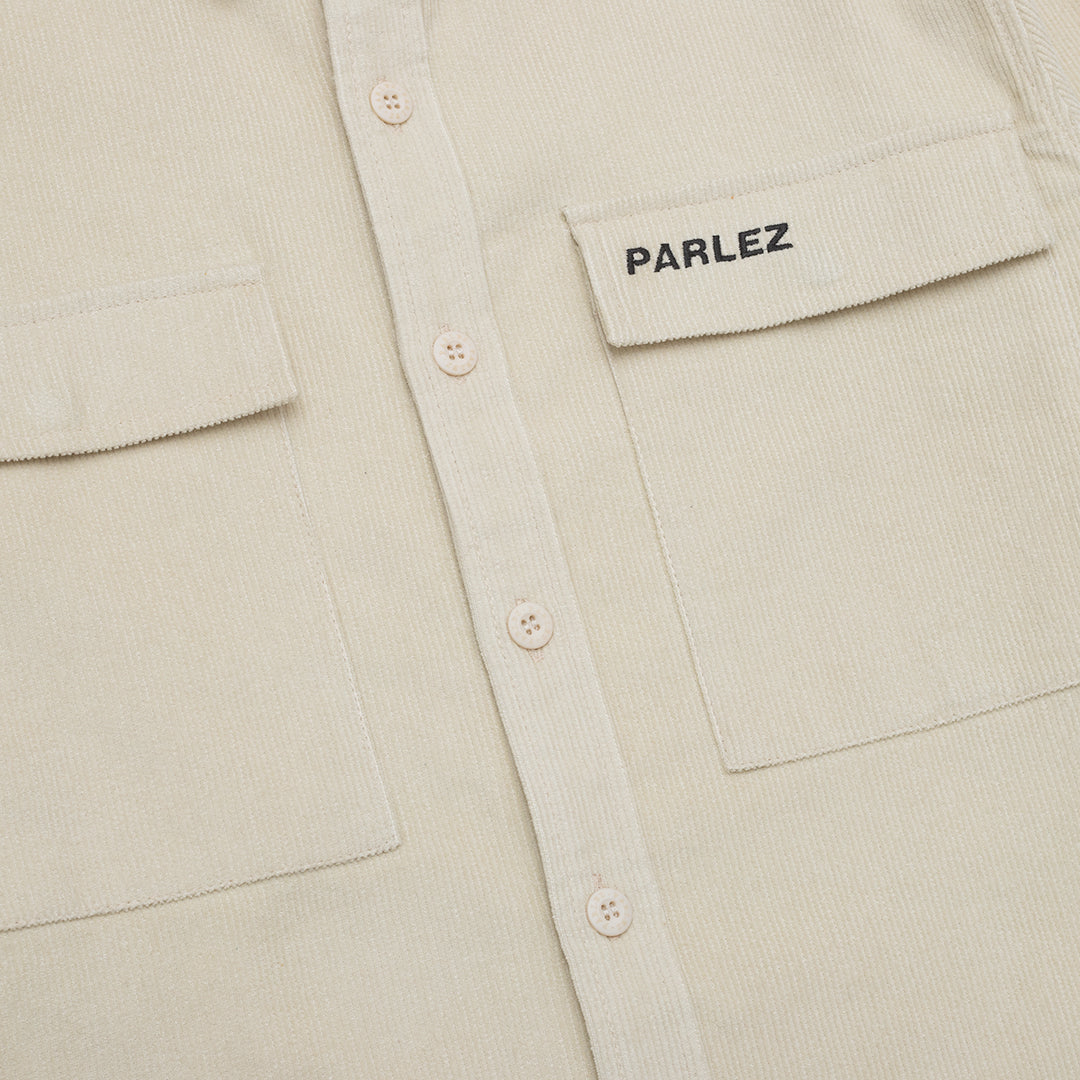 The Mayreau Cord Shirt in Ecru. A classic shirt constructed from a mid-weight cotton corduroy with button fastening. Featuring two large chest pockets with contrasting embroidered branding and popper closure. - 100% Cotton Corduroy- Button Fastening- Twin Chest Patch Pockets With Popper Fastening- Embroidered Branding- Button Closure Cuffs