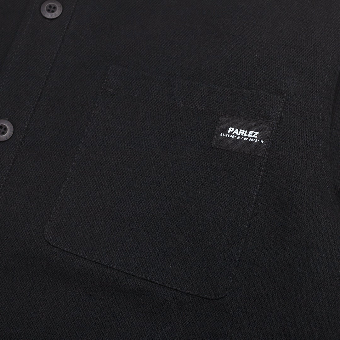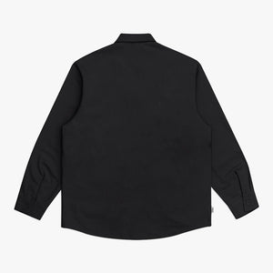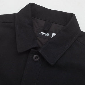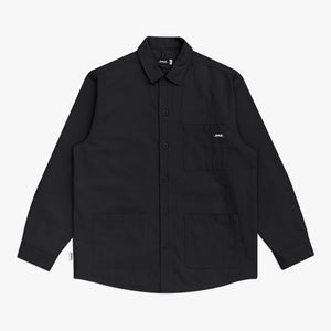 The Nantucket Jacket in Black. A classic work jacket silhouette constructed from a durable, heavy cotton twill. Featuring three front patch pockets, button down fastening and a tonal woven patch on the chest.
