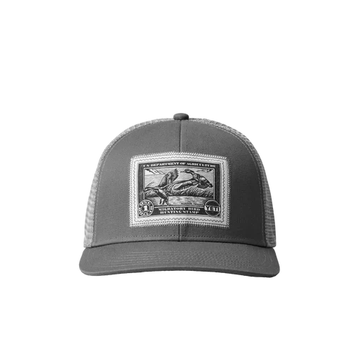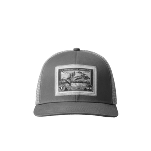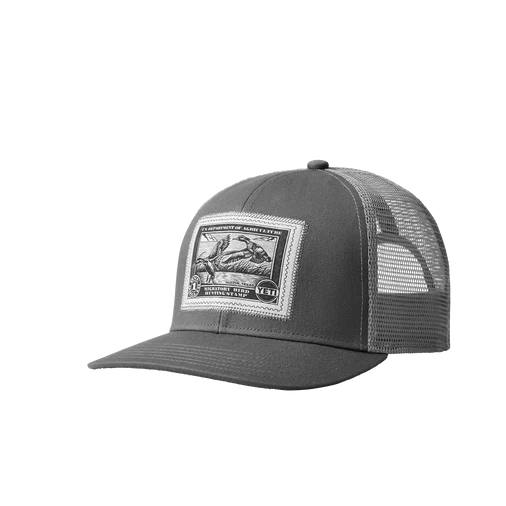Get a stamp of approval from fellow duck hunters in this Men's YETI Duck Stamp Trucker Cap. It's made from cotton and polyester and features a Bureo® brim which is derived from NetPlus® – a material made from 100% recycled fishing nets to help reduce plastic pollution in our oceans.